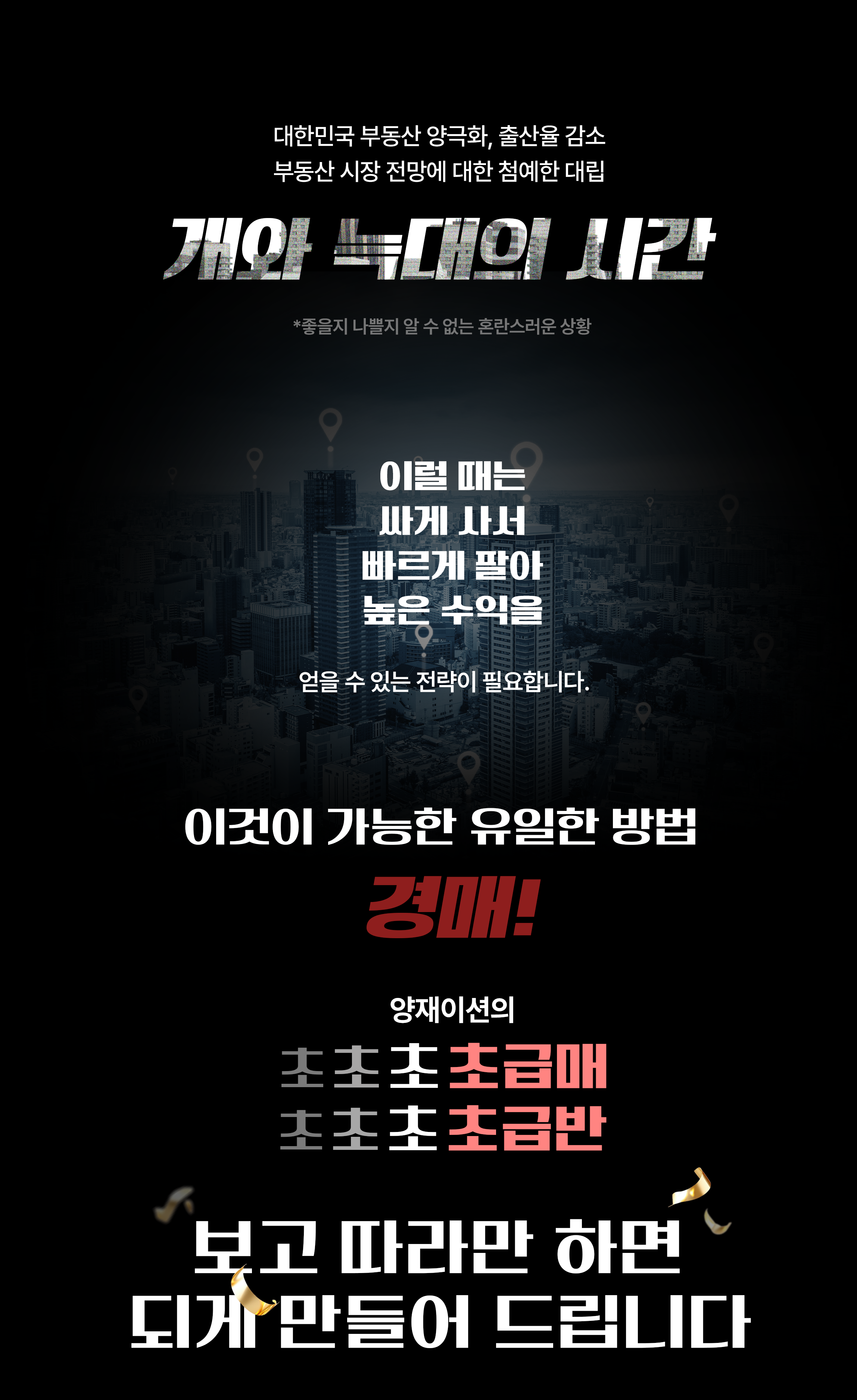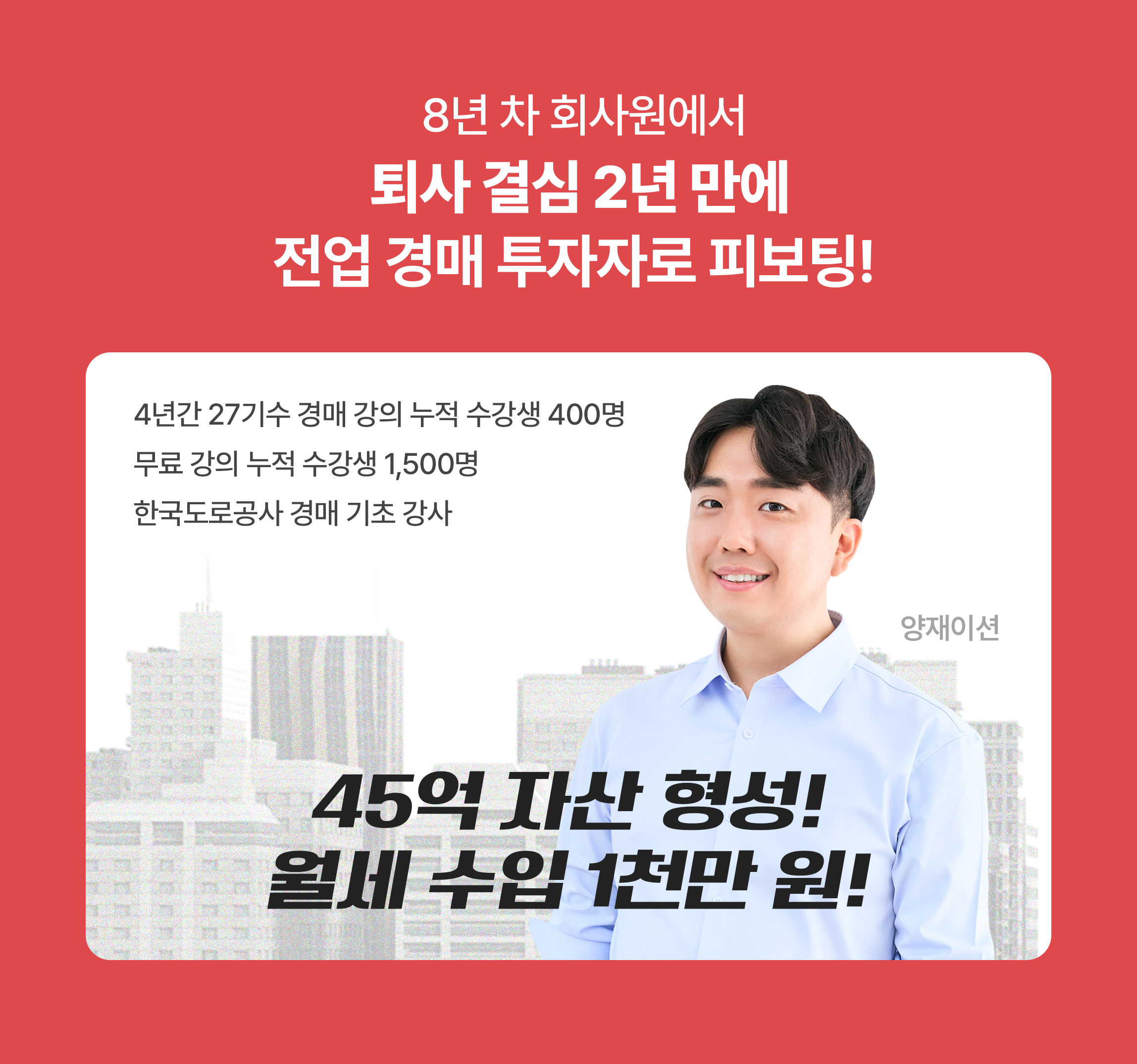 핫한 바로 그 강의 맞습니다. 명쾌한 양재이션의 노하우가 담긴 실전 경매 코스!